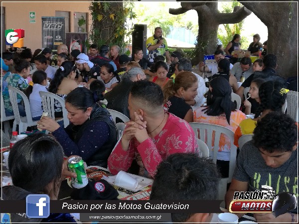 Al finalizar con el mensaje, se procedió a partir el pastel y lo compartieron con todos los asistentes, luego iniciaron con las rifas en donde se entregaron premios, cortesía de diferentes patrocinadores, entre ellos VRC que les donó dos cascos para poder sortearlo entre los invitados.