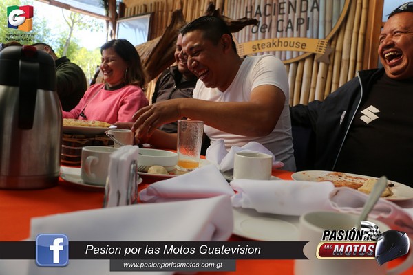 Al dar las ocho de la mañana, salieron rumbo al restaurante Hacienda El CAPI ubicado en el km 31.6 de la Carretera Interamericana en San Bartolomé, Milpas Altas. En donde los integrantes de este motoclub fueron muy bien recibidos y degustaron de un exquisito desayuno estilo buffet, compartiendo entre risas y anécdotas, historias las cuales los han unido y los han convertido en una familia más que en un motoclub.