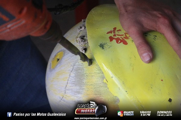 Como primer paso se lija muy bien el casco, se diluye un poco de masilla para empezar a hacerle los detalles al casco, tapando los poros que suelen salir, dándole la textura al casco, dependiendo del detalle que pida el cliente.