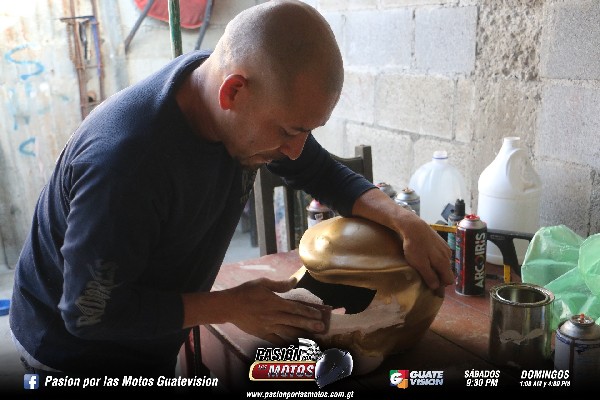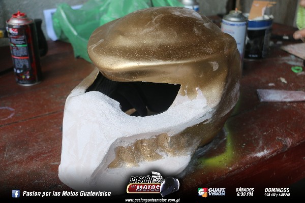 Como segundo paso se aplica la pintura, aquí se logra ver todas las imperfecciones que pueda tener el casco. En el caso de un casco de segunda se pide que sea certificado, siempre al pedido del cliente, brindándole un buen soporte al casco. A la careta hay que darle muy buenos detalles, se le aplica un fondo de pintura, para empezar ya armar el casco.