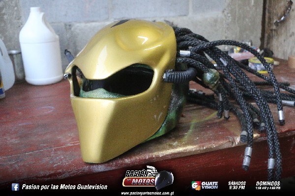 Para colocarle las rastras se debe de perforar el casco, en mi caso trabajo con lazo y se pega muy bien adentro con masilla y con fibra de vidrio, dándole mayor seguridad ya que su visión es de un 75% debido a las modificaciones requeridas. Se reincorporan las piezas, ya que el casco se desarma por completo.