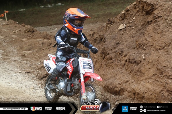Ahora bien, para cerrar con broche de oro recibimos a las Categorías Pewee y 50cc Mini quienes corrieron juntas y tuvieron una salida muy reñida pero llena de mucha adrenalina, así es que lograron integrarse perfectamente bien al circuito y comenzar a disfrutar de los primeros minutos de competencia en la pista, definitivamente estos pequeños crossistas disfrutaron al máximo de su participación, aunque la suerte no corrió para todos ya que la piloto #25 sufrió una pequeña lesión y tuvo que ser apoyada por el equipo de asistencia médica pero, afortunadamente no fue nada grave, pero, la competencia no quedó ahí ya que el resto de pilotos continuó dando lo mejor de sí y haciendo su mejor esfuerzo para ser de los mejores de sus categorías, así que finalmente fueron recibidos con bandera a cuadros en la meta siendo Santiago Cano el primero de la Categoría Pewee de segundo Marcelo Hernández y de tercero Nery Acevedo ahora bien en la 50cc Mini de primero Gabriel Fabian, de segundo André Alvarado y de tercero Thiago Masis.