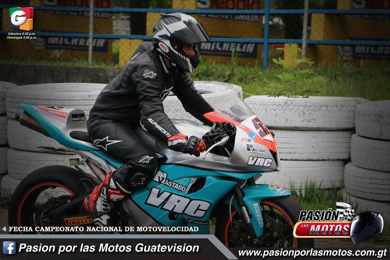El reconocido piloto integrante del team VRC, Mario Abascal, sigue más potente que nunca. Cada entrenamiento que realiza se ve reflejado sobre la pista. En esta ocasión nuevamente gana el primer lugar en la categoría Intermedios Súper Sport. Abascal mantiene la línea, dejando en segunda posición José Mazariegos y en tercero a Helman Duarte.