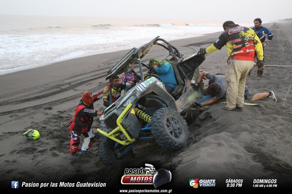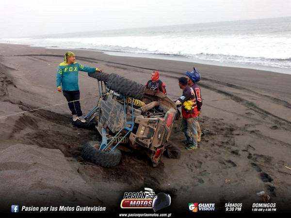 Todos aprovecharon a disfrutar de la arena haciendo unas pequeñas vueltas en la arena e hicieron diferentes competencias para probar la potencia de sus 4x4. Al dar las cinco de la tarde, inicio el retorno, sin embargo uno de los pilotos no pudo controlar su máquina al pasar por una zanja de arena, por lo que metió el freno y quedo totalmente volteado, así que los amigos no dudaron en apoyarlo y usaron su winch para enderezarlo.