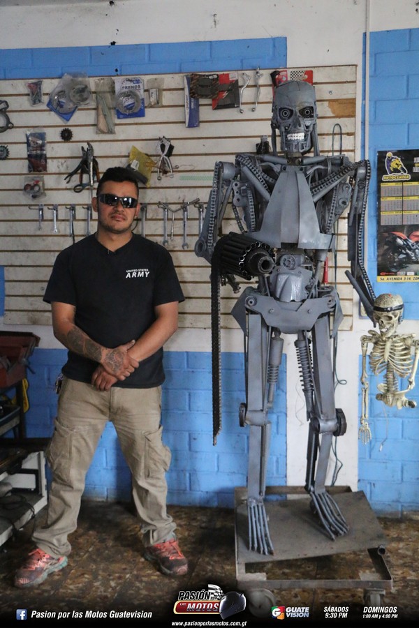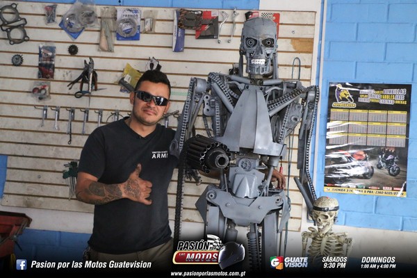 Wuilfredo Morales, representante de Moto Servicios Morales, en conjunto con su equipo de trabajo, crearon el robot ahora conocido como “Terminator de Guatemala”, el cual está fabricado con repuestos de motocicletas.