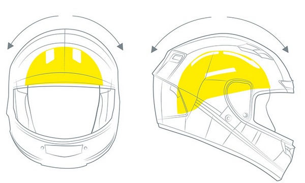 Hoy, todos los cascos de moto certificados ofrecen un nivel básico de protección. Su eficacia se prueba en impactos directos lineales al dejarlos caer desde cierta altura sobre un yunque plano, pero en realidad rara vez se da un impacto en un ángulo preciso de 90 grados y uno oblicuo puede conducir a un movimiento rotacional dañino para el cerebro.