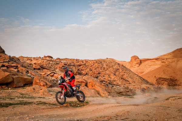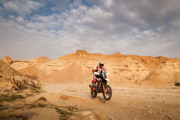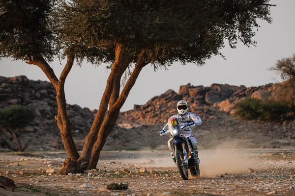 Los hombres con prisa no necesariamente tienen la última palabra en el Dakar. Kevin Benavides lo sabe muy bien de ediciones precedentes… En esta ocasión, ha rozado la sanción pero ha completado su gesta con honores, dado que se ha embolsado la etapa de Al Qaisumah, a cuyo vivac llegaba con la condición de nuevo líder de la general. El tremendo golpe que el argentino no lograba salvar en las dunas le ha dejado sin embargo una nariz fracturada y un tobillo tocado, si bien debe en gran medida su nueva posición al talento de navegador prudente de su compañero de equipo y guía del día Nacho Cornejo, 2º en la etapa y 3º en la general.