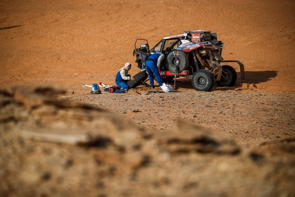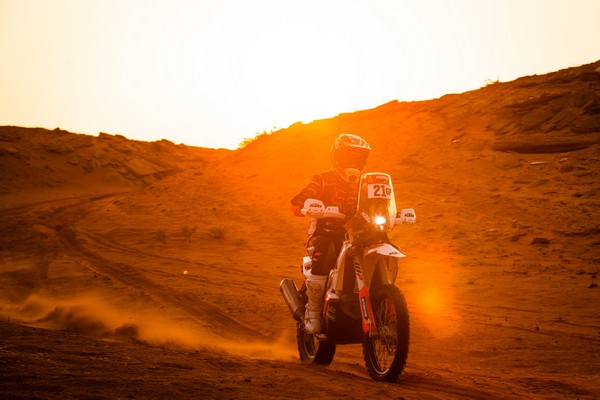 La ciudad del futuro no ha emergido aún de la arena y la roca, pero la región de NEOM impresiona ya por sus milenarias formaciones geológicas. Los cañones, acantilados y montañas rocosas de tonos ocres entre los que han serpenteado los pilotos durante la segunda mitad de la especial les han planteado tantos retos de navegación como los que se toparon al dejar atrás Sakaka. En la parte inicial de la especial los competidores han tenido que lidiar con tramos pedregosos que han causado estragos entre las motos de los motoristas, o si no que se lo digan a Toby Price y Sam Sunderland.