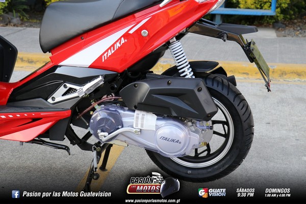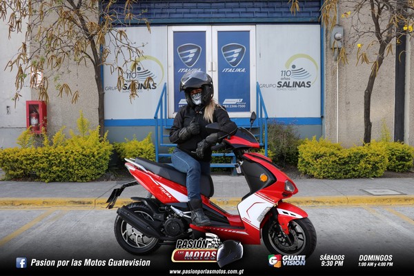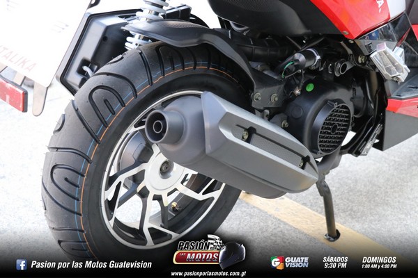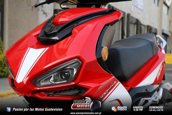 Quiero contarte que viene con un motor de cuatro tiempos, monocilíndrico, con una transmisión automática, de ocho caballos de fuerza. Puede ser arrancada usando su sistema eléctrico y también de patada. Los colores rojo y blanco, con una moderna iluminación Led, la hacen especial. Es una Scooter con un carenaje de aspecto deportivo.