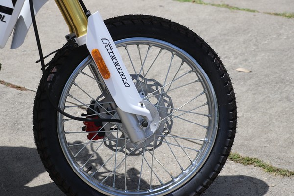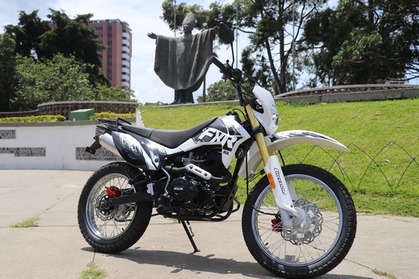 Y otras de las características de esta motocicleta es que ya cuenta con llantas para su uso urbano dando 70% de asfalto y un 30% de terracería. Ahora con los aros: cuenta con el delantero de rin 19 y trasero con rin 17 ambos de rayos.