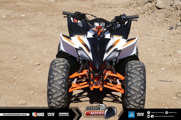 ¡Qué tal amigos, mi nombre es Tayron Cordón! Venimos a presentarles estas novedosas cuatrimotos marca Kayo en la versión 110cc y la Kayo 180cc. Déjenme decirles que es una moto novedosa, pues cuentan con su doble Silbín delantero, su suspensión doble en la parte de adelante y su monoshock en la parte de atrás. La versión 180 la encontramos con parrilla tanto delantera como trasera y ambas cuentan con su defensa.