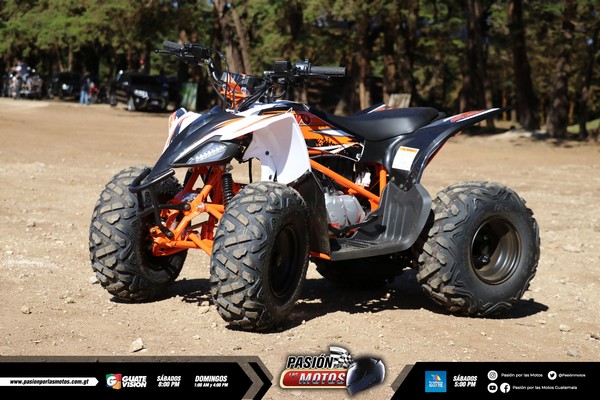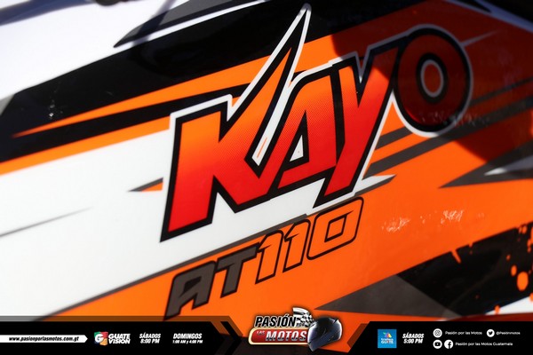 Kayo AT 110cc; con un motor de 110cc, de trasmisión full automática, todo terreno, tracción de cadena, suspensión delantera de doble shock delantero, suspensión trasera de monoshock ajustable, arranque eléctrico CDI, frenos de disco ventilado. Extras; doble luz delantera, luz trasera o stop, defensa frontal contra impactos, protector de timón, posa pie antideslizante, y kit de herramientas.