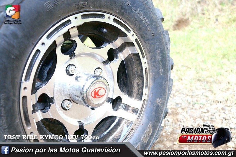 Este UTV viene con llantas con aros con medida 25 8x12 en la parte delantera, mientras que en la parte de atrás tiene de 25 10x12. Las llantas siempre tienen que ir a un peso ideal de 10 libras de presión, porque no es lo mismo andar en asfalto que andar en terracería, y la prueba de hoy será en terracería.