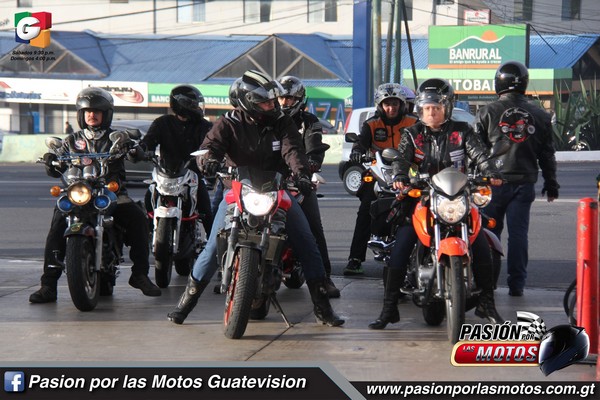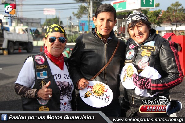 A las seis y treinta de la mañana se reunieron en la gasolinera Puma Italiano situada en la Calzada Roosevelt en donde desde un inicio se sintió la hermandad Biker, ya que Pichy Rider, Presidente de Mujeres de Acero, hizo entrega del parche oficial a dos nuevas integrantes, ellas son Vita Bella y Vanesa Morales, quienes se suman al motoclub para rodar juntas y hacer eventos de beneficiencia.
