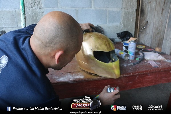Como segundo paso se aplica la pintura, aquí se logra ver todas las imperfecciones que pueda tener el casco. En el caso de un casco de segunda se pide que sea certificado, siempre al pedido del cliente, brindándole un buen soporte al casco. A la careta hay que darle muy buenos detalles, se le aplica un fondo de pintura, para empezar ya armar el casco.