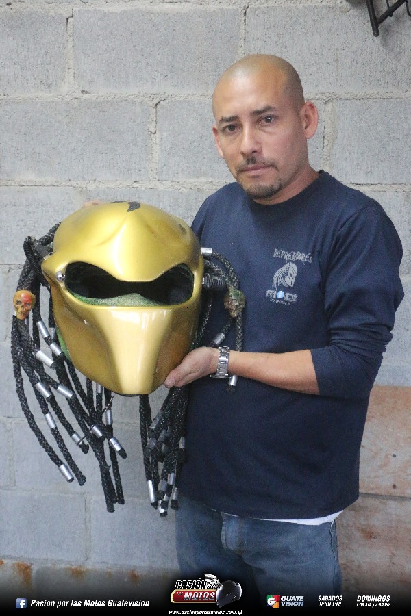 Para colocarle las rastras se debe de perforar el casco, en mi caso trabajo con lazo y se pega muy bien adentro con masilla y con fibra de vidrio, dándole mayor seguridad ya que su visión es de un 75% debido a las modificaciones requeridas. Se reincorporan las piezas, ya que el casco se desarma por completo.