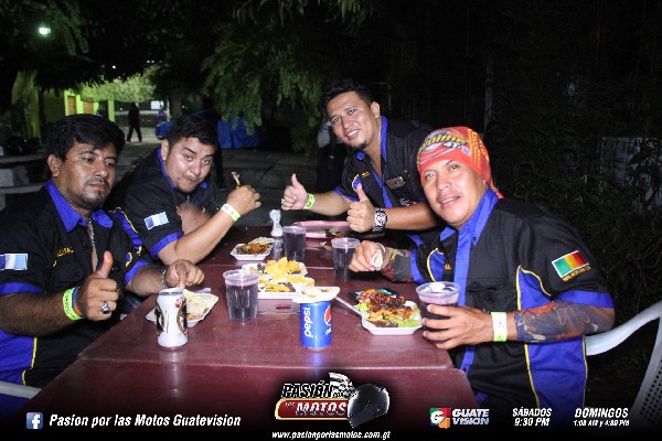 Luego de rodar por unos kilómetros, llegaron a su destino el turicentro Aguas Vivas en donde se dieron un chapuzón, disfrutando del caluroso clima de Santa Lucia, Cotzumalguapa. Al caer la noche todos los asistentes disfrutaron de una exquisita cena en buena compañía mientras comentaban de sus anécdotas de viajes.