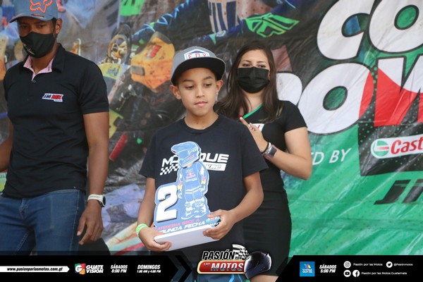 Ahora bien, para cerrar con broche de oro recibimos a las Categorías Pewee y 50cc Mini quienes corrieron juntas y tuvieron una salida muy reñida pero llena de mucha adrenalina, así es que lograron integrarse perfectamente bien al circuito y comenzar a disfrutar de los primeros minutos de competencia en la pista, definitivamente estos pequeños crossistas disfrutaron al máximo de su participación, aunque la suerte no corrió para todos ya que la piloto #25 sufrió una pequeña lesión y tuvo que ser apoyada por el equipo de asistencia médica pero, afortunadamente no fue nada grave, pero, la competencia no quedó ahí ya que el resto de pilotos continuó dando lo mejor de sí y haciendo su mejor esfuerzo para ser de los mejores de sus categorías, así que finalmente fueron recibidos con bandera a cuadros en la meta siendo Santiago Cano el primero de la Categoría Pewee de segundo Marcelo Hernández y de tercero Nery Acevedo ahora bien en la 50cc Mini de primero Gabriel Fabian, de segundo André Alvarado y de tercero Thiago Masis.