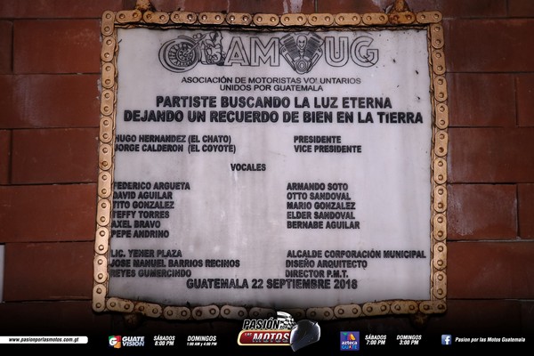 Dicho monumento, se encuentra ubicado en San Lucas Sacatepéquez en el kilómetro 29 ruta Interamericana, lugar al que asistieron alrededor de 80 bikers que recordaron a sus seres queridos, con quienes más de una vez compartieron el privilegio de rodar su motocicleta en las carreteras del país y otros atravesaron fronteras juntos.