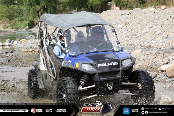A 10 kilómetros de Guastatoya tomaron un pequeño descanso y reagruparon a todos los pilotos, donde algunos metros después uno de los pilotos sufrió un pinchazo así que nuevamente el compañerismo entre pilotos relució, por lo que habiéndose asistido se integraron nuevamente a la ruta cruzando un pequeño y agradable pueblo donde se robaron las miradas de quienes los veían pasar a bordo de sus carritos y cuatrimotos dirigiéndose al área donde disfrutarían del delicioso almuerzo; que constó de unas deliciosas carnitas y chicharrones acompañadas de una deliciosa bebida.