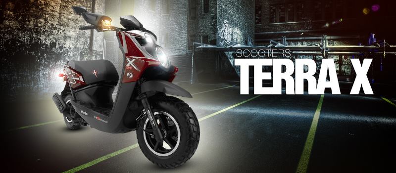 La nueva Vento Terra - X cuenta con doble faro frontal, sus líneas contemporáneas, su par de luces traseras y llantas anchas.