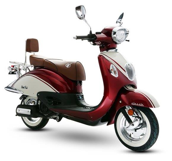 La nueva Vento Street Rod en color corinto y negro, una scooter con diseño clásico y elegante, diseñada para dos personas de motor 150cc. Vento STREET ROD es la magnifica heredera del protagonismo en las calles, moderna e indiscutible estilo "retro" la hacen distinguirse en el ambiente metropolitano de una forma fascinante.
