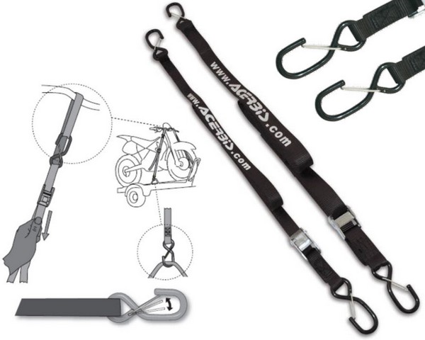 Nosotros en realidad usamos cinchas de marca Acerbis, estas las pueden adquirir en la Agencia Pasión por las motos y pues tienen un costo de Q300.00 quetzales en nuestra agencia. No debemos tensarlas demasiado, ya que en un túmulo o un bache lo que va a hacer es que nos va a reventar las cinchas y lo que queremos es solo asegurar el carrito, y luego el sobrante le hacemos un nudo por debajo del ajustador para evitar que este mismo se corra.