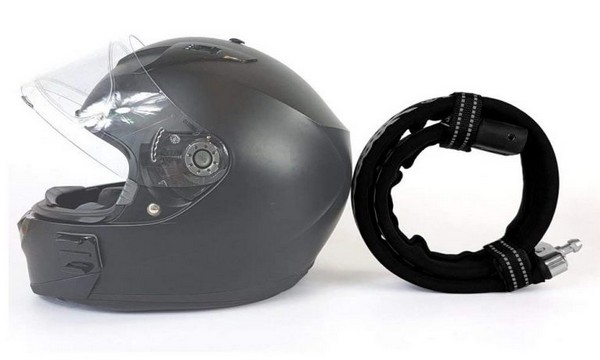 Lo ideal de ésta “cadena” es que pesa solamente 1,46 kilogramos, mientras que su longitud es de 107 cm y su ancho es de 5 cm. Además de su peso ultra liviano, el material con que fue fabricada permite que pueda enrollarse, ocupando menos espacio que un casco integral.