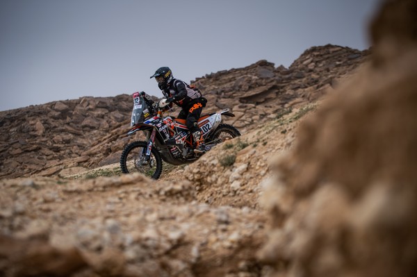Los hombres con prisa no necesariamente tienen la última palabra en el Dakar. Kevin Benavides lo sabe muy bien de ediciones precedentes… En esta ocasión, ha rozado la sanción pero ha completado su gesta con honores, dado que se ha embolsado la etapa de Al Qaisumah, a cuyo vivac llegaba con la condición de nuevo líder de la general. El tremendo golpe que el argentino no lograba salvar en las dunas le ha dejado sin embargo una nariz fracturada y un tobillo tocado, si bien debe en gran medida su nueva posición al talento de navegador prudente de su compañero de equipo y guía del día Nacho Cornejo, 2º en la etapa y 3º en la general.