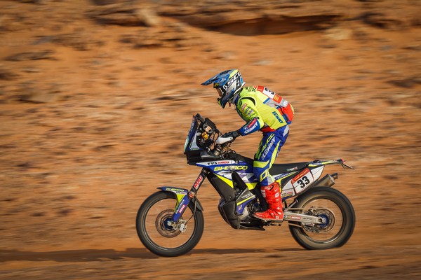 La ciudad del futuro no ha emergido aún de la arena y la roca, pero la región de NEOM impresiona ya por sus milenarias formaciones geológicas. Los cañones, acantilados y montañas rocosas de tonos ocres entre los que han serpenteado los pilotos durante la segunda mitad de la especial les han planteado tantos retos de navegación como los que se toparon al dejar atrás Sakaka. En la parte inicial de la especial los competidores han tenido que lidiar con tramos pedregosos que han causado estragos entre las motos de los motoristas, o si no que se lo digan a Toby Price y Sam Sunderland.