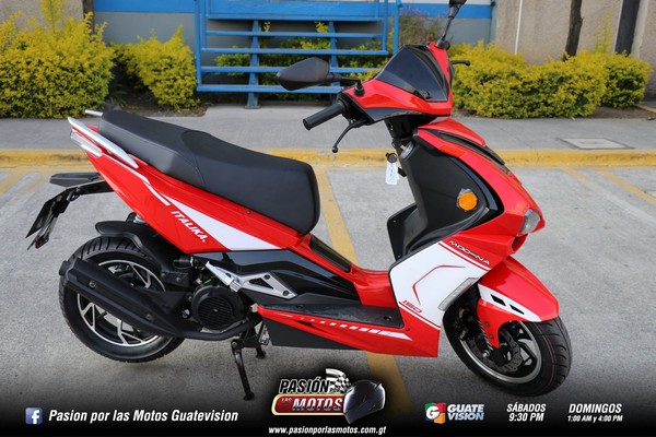 Quiero contarte que viene con un motor de cuatro tiempos, monocilíndrico, con una transmisión automática, de ocho caballos de fuerza. Puede ser arrancada usando su sistema eléctrico y también de patada. Los colores rojo y blanco, con una moderna iluminación Led, la hacen especial. Es una Scooter con un carenaje de aspecto deportivo.