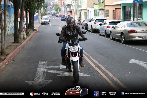 En la prueba de frenado, les puedo contar que me gusta el sistema de frenado combinado, es muy preciso y evita el derrape al momento de hacer una maniobra muy brusca. Me está entregando los 18.5 caballos de fuerza. Es una moto muy práctica para el tráfico de Guatemala pero también para darse sus colazos los fines de semana.